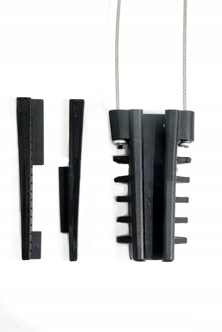 Контрольний тримач призначений для підвішування самонесучих круглих кабелів (діаметром 3-7мм). Призначення відтяжних тримачів полягає в натягуванні тросів ADSS між прольотами. Кріпи дозволяють кінець шнура та його натяг. Завдяки знімному кабелю тримач можна використовувати на будь-яких типах кронштейнів.