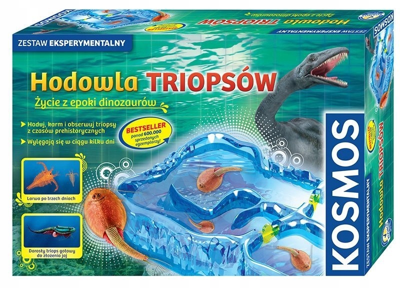 Тріопси жили на Землі ще в епоху динозаврів. І їх досі можна зустріти в калюжах і мілководних водоймах, а динозаври давно вимерли.nnНабір містить повне обладнання для розведення тріопів, включаючи, перш за все, яйця, які можуть довго зберігатися у висушеному стані, і з яких тріопів личинки швидко вилуплюються. У великому повнокольоровому посібнику детально пояснюється процес розведення тріопів і надаються різноманітні важливі поради. Розумно сконструйований танк складається з двох зон, де вилуплюються трійці, і де їх можна розглядати під збільшувальним склом. Ви також можете спостерігати за трійками, які шукають їжу в коридорах лабіринту.