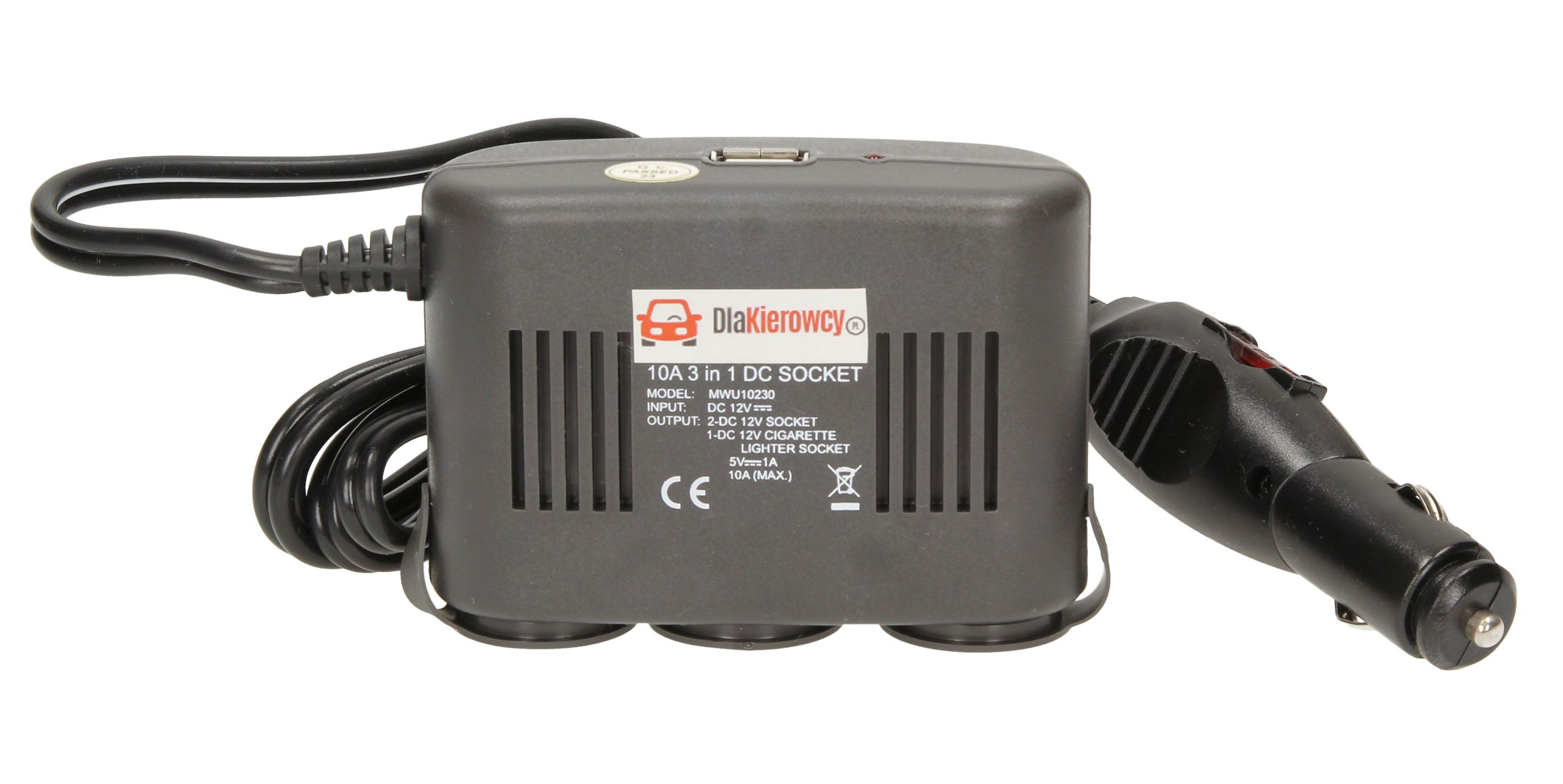 Сплітер, 3 гнізда прикурювача 12В / 24В, потрійний розгалужувач з USB, розгалужувач, трійник, розгалужувач, найякісніший, товстий і міцний кабель 1,15 м, закінчений штекером прикурювача з вбудованим змінним запобіжником 10А< /h1> Продукт для вимогливих клієнтів - ми гарантуємо підтверджену роботу від 12 В і 24 В з максимальним струмом до 10 А