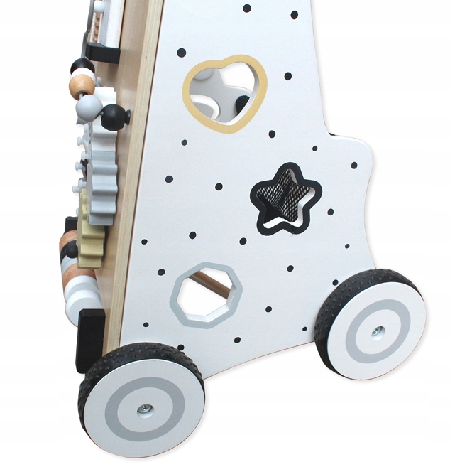 Стійкі та безпечні Дерев'яні ходунки - це іграшка, яка супроводжує дитину під час перших кроків, а також чудово підходить як іграшка, яка розвиває моторику дитини.