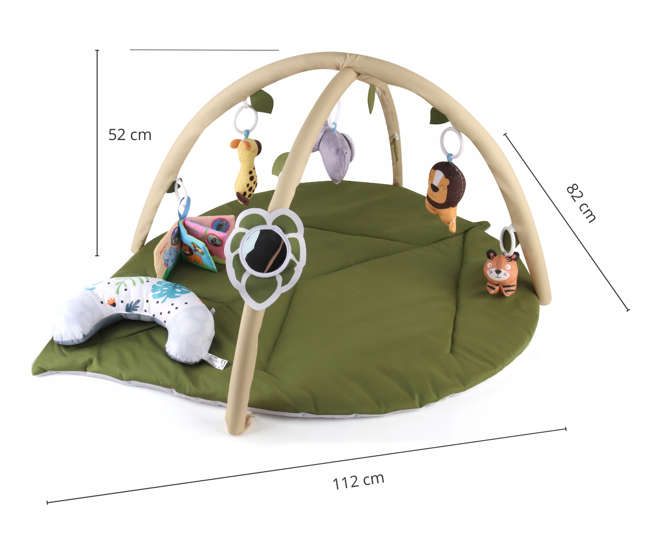 Навчальний та сенсорний килимок TinyMini 353-1A у формі листочка — це унікальна пропозиція для малюків з перших днів життя. Його природні кольори та чарівні іграшки, натхненні дикою природою, створюють ідеальне середовище для сенсорного розвитку малюка.