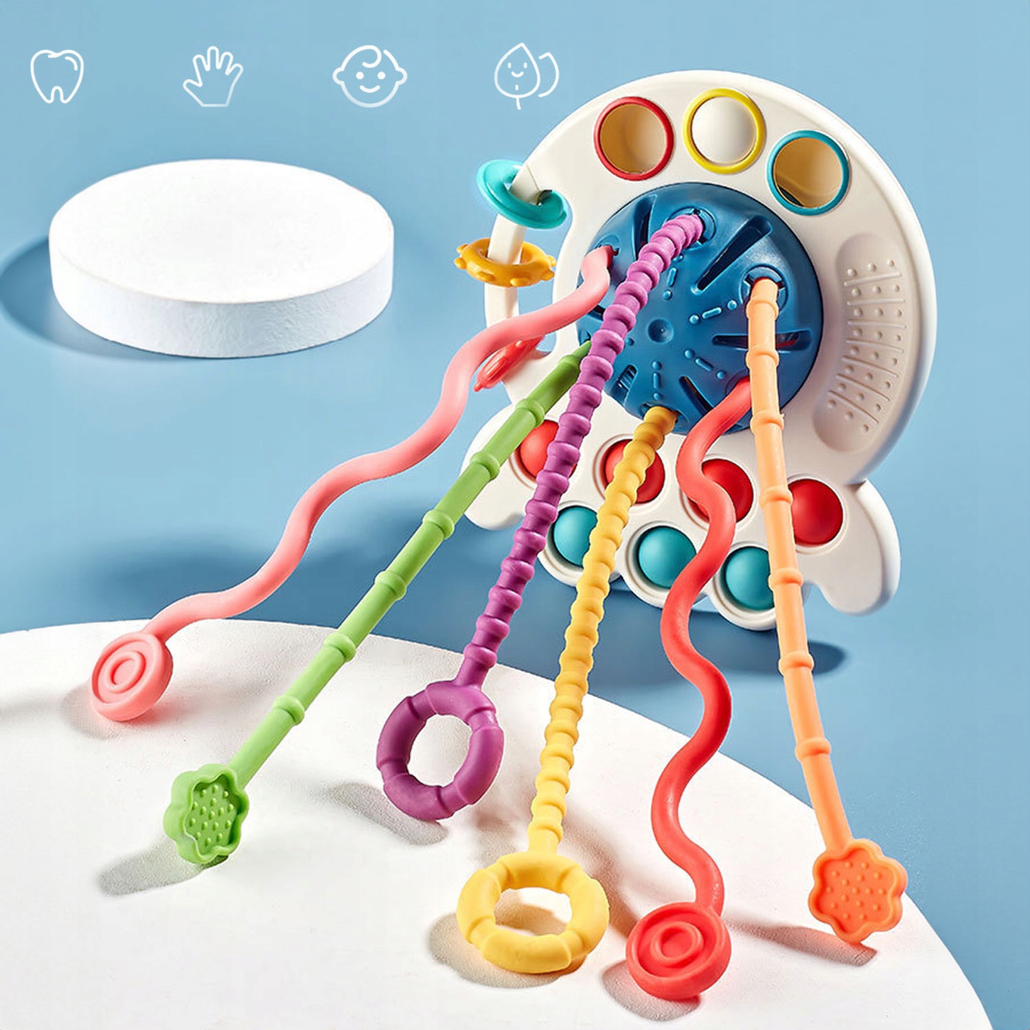 Сенсорна іграшка Montessori Teether Teether "Tug" — це інноваційна іграшка, створена для підтримки всебічного розвитку немовлят.