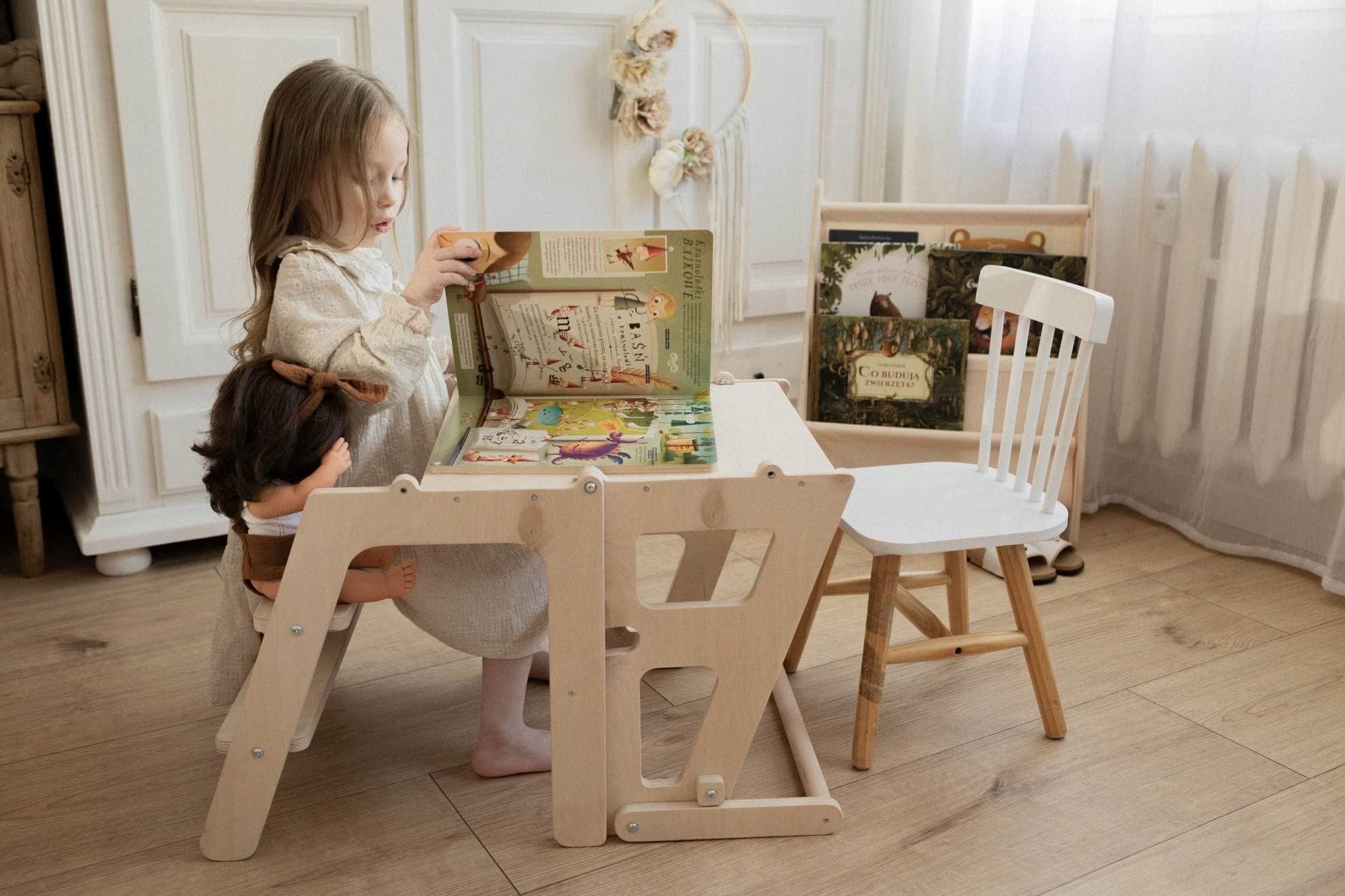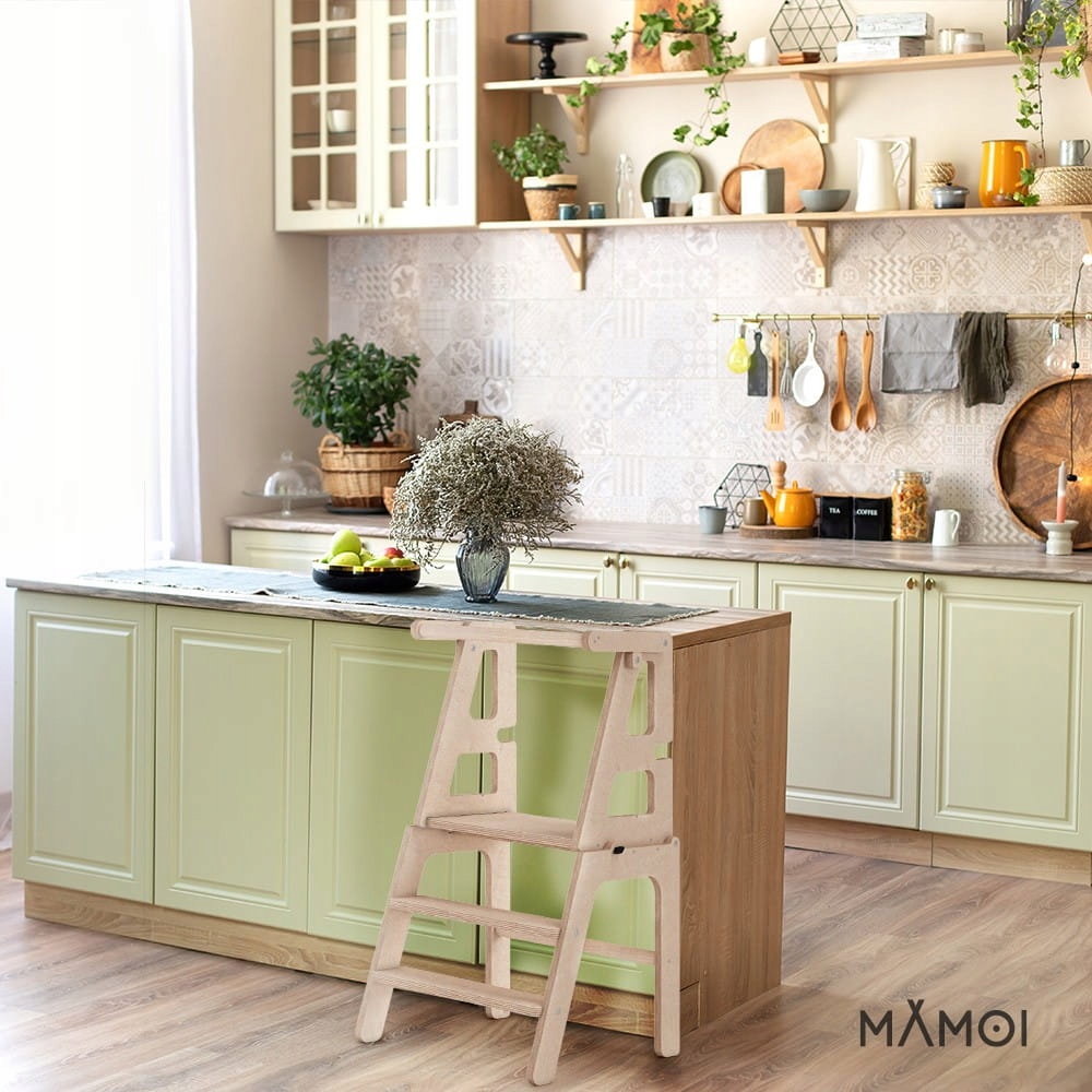 ✅ Опис товару: MAMOI пропонує унікальні товари для дітей, які створені відповідно до скандинавської естетики та функціональності. Дитяча кухонна табуретка - це універсальне доповнення будь-якої кухні та дитячої кімнати. Стійка основа закріплена дерев'яною підніжкою, завдяки чому дитина почувається в повній безпеці. Дитина може допомагати на кухні або гратися з батьками, братами і сестрами. Сходинки для малюків також можуть служити альтернативою дитячому стільчику, оскільки вони гарантують свободу пересування.Конструкція кухонного стільчика для малюків повністю виготовлена з дерева та високоякісної фанери. Всі елементи призначені для самостійного монтажу за допомогою гвинтів, що входять в комплект. Навчальна вежа Монтессорі підходить для дітей старше 18 місяців. Дерево можна чистити делікатними засобами і злегка вологою ганчіркою. Складаний кухонний помічник також оснащений ручками для зручного перенесення. Також відомий як: дитячі сходинки для кухні, кухонні меблі, дитячий табурет, складна навчальна вежа, навчальний стілець і стілець, дитячий кухонний стілець, вежа Монтессорі, навчальна вежа для дітей старше 1 року, навчальна вежа для дітей старше 2 років .✅Технічні дані: