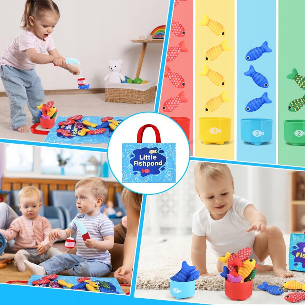 Класичні навчальні іграшки у цікавій формі підтримують координацію очей і рук, швидкість реакції, моторику та розпізнавання кольорів. З іграшкою для риболовлі та сортування діти можуть не тільки вчитися, але й розвивати терпіння.