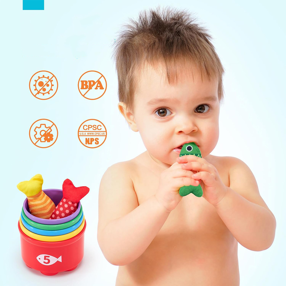 Наша іграшка для риболовлі виготовлена з високоякісного повсті, що забезпечує чудове захоплення, що відрізняє її від інших іграшок з дерева та пластику. Наші рибки та вудки м'які та приємні на дотик, ідеальні для маленьких ручок. Підставка для рибок має застібку-липучку, яка полегшує кріплення рибок. Чашки, які можна складати, виготовлені з зручного для дітей поліестеру та нетоксичного поліпропілену для безпечної та заспокійливої гри. Яскраві кольори цієї іграшки Монтессорі приваблюють дітей і займають їх годинами.