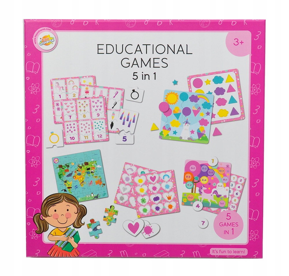 ZESTAW GIER EDUKACYJNYCH DLA DZIECI 5 W 1 RÓŻOWY