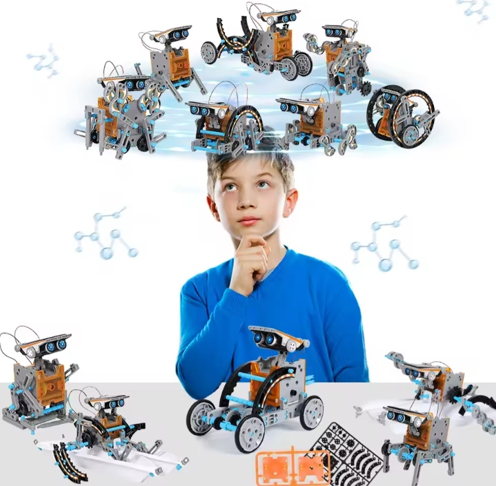 Набір «Конструктор сонячних роботів» містить усі деталі, необхідні для створення справжнього робочого робота з нуля! Завдяки широкому асортименту різних рухомих і з’єднувальних частин, таких як шестерні, пластини, шини та вали, ви можете використовувати включені проекти для створення 13 різних стилів роботів!