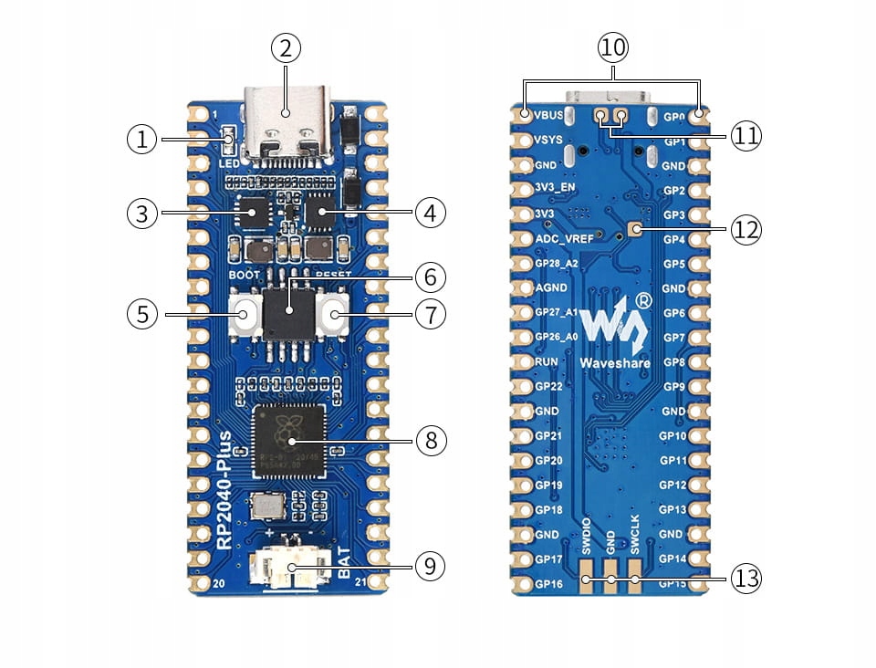 Плата RP2040-Plus, сумісна з Raspberry Pi Pico