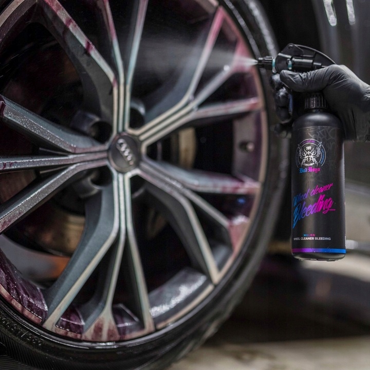 Чистий обід — візитна картка автомобіля. Wheel Cleaner Bleeding дуже ефективно проникає в бруд. Завдяки вдосконаленій формулі випаровується повільніше. Він залишається на поверхні обідка у вигляді рівномірної, гелеподібної глазурі. Продукт сильно реагує з металевим відкладенням, що призводить до інтенсивного криваво-червоного відтінку гелю. Рекомендується для сильно забруднених дисків. Він має лужний pH і безпечний для пофарбованих дисків. Щоб робота з продуктом була приємнішою, запах (характерний для інших товарів цього типу) нейтралізовано.