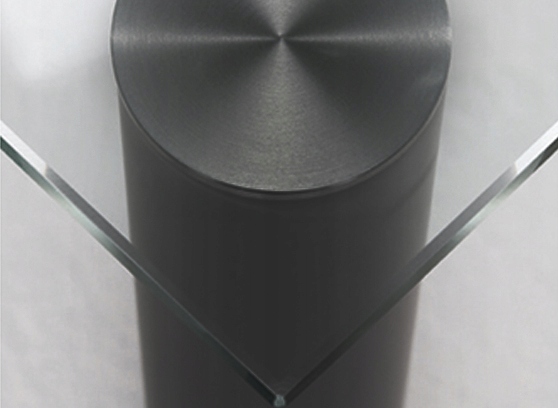 Стільниця та полиці із загартованого скла в 5 разів міцніші за звичайне скло та з’єднуються з конструкцією за допомогою УФ-клею .