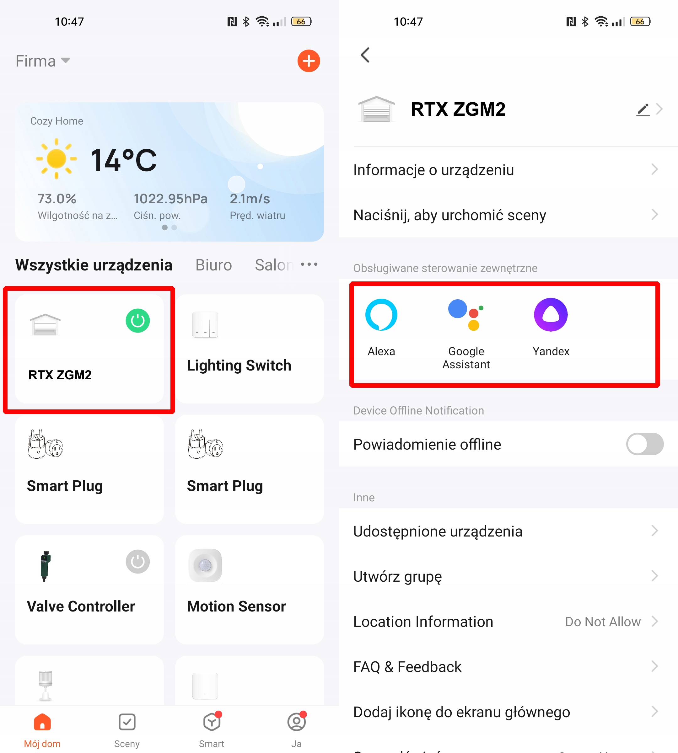Після підключення програми Tuya/ Smart Life з Google Home або Alexa, користувач може керувати відкриттям голосу UB, закривши ворота.