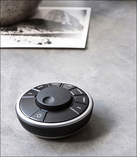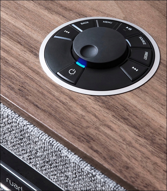 Елемент керування RotoDial торгової марки Ruark Audio забезпечує просте керування пристроєм, і, як і флагманський R7, R5 також постачається з пультом дистанційного керування, який точно відображає управління основним елементом керування.