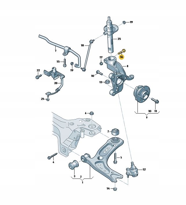 ŚRUBA ZWROTNICY AMORTYZATORA + NAKRĘTKA SKODA VW