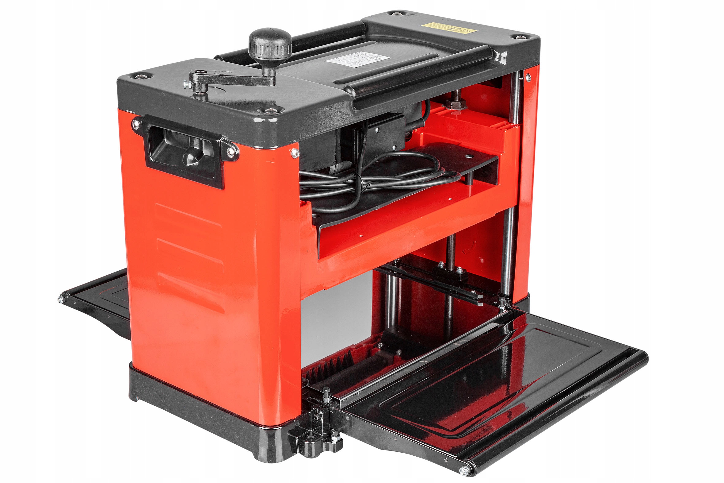 На передній панелі рубанка є герметично захищений перемикач і аварійний вимикач, які дозволяють безпечно працювати з пристроєм.