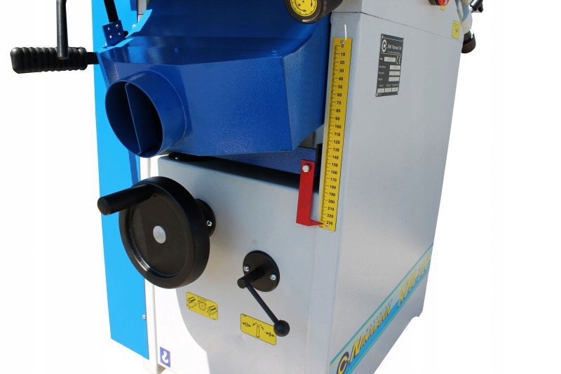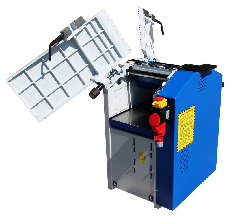 Чавунні стільниці з полірованою поверхнею. Точно регульовані столи для поздовжнього стругання. Стабільна алюмінієва стрічка (culaga) з можливістю нахилу від 90° до 45°. Кришка фрезерної головки. Робочий стіл для стругання товщини з центральною напрямною колоною та опорою. Вмикайте та вимикайте живлення, не зупиняючи машину. Дробна машина з поворотом вліво. Двигун 3,0 кВт.