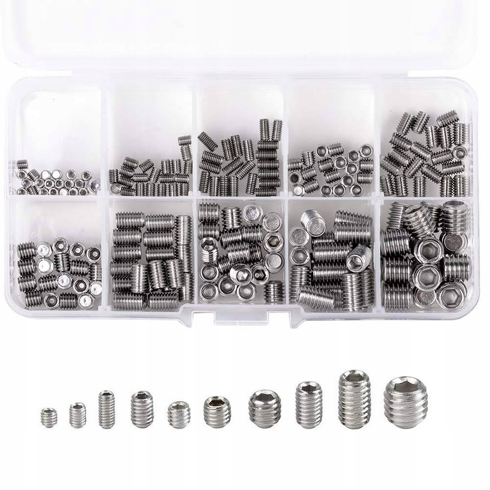 ŚRUBY WKRĘTY IMBUSOWE DOCISKOWE BEZ ŁBA - ZESTAW 200 SZTUK RÓŻNE ROZMIARY