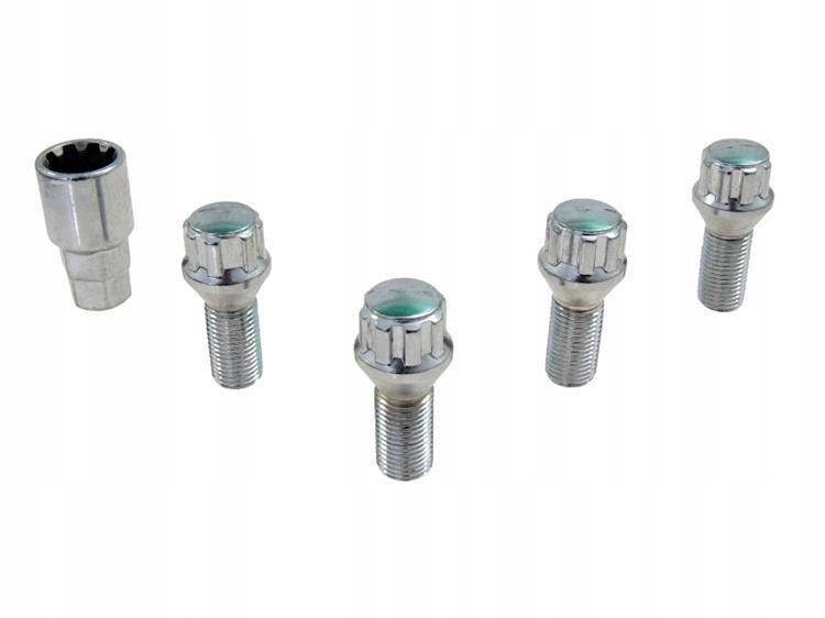 Набір протиугінних колісних болтів. Містить 4 гвинти та спеціальний ковпачок, який підходить для більшості торцевих ключів. Унікальна форма гвинтів означає, що їх можна відкрутити лише за допомогою гайкового ключа, який входить у комплект. Конус.