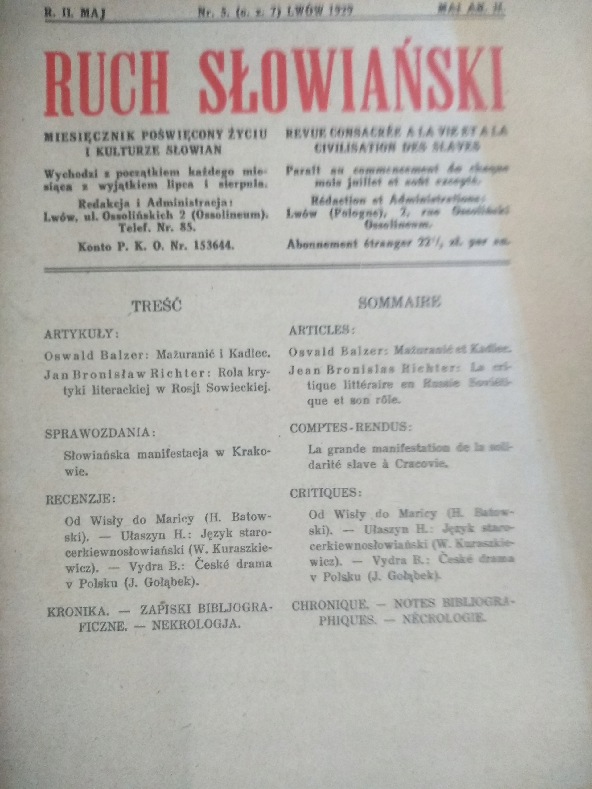 Ruch Słowiański 5/1929 Balzer, Richter, Vydra