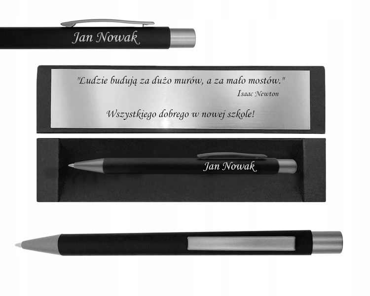 Кнопкова ручка з м'яким матеріалом. Канцтовари в картонній коробці. Ми можемо зробити будь-яке гравіювання на виробі. До ручки додається коробка, на якій ми розмістимо вигравірувану пластину з вашою присвятою. Чорна кулькова ручка з графітовими аксесуарами.
