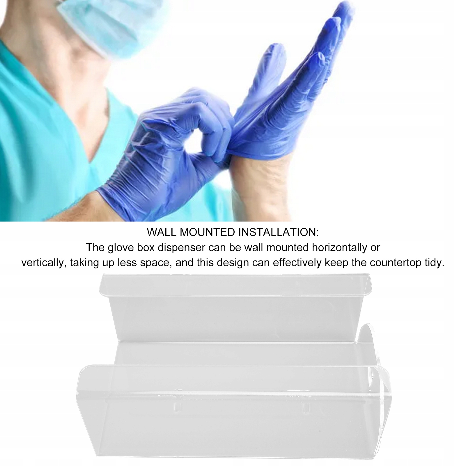 2. Установка, встановлена на стіні: дозатор рукавичок може бути встановлений на стіні горизонтально або вертикально, займаєши менше місця, і ця конструкція може ефективно підтримувати порядок стільниці.