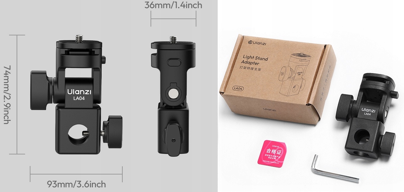 ⭐ з нижнього кріплення для класичного освітлення / студії -studio 12 мм і 16 мм. Для блокування положення використовується гвинтовий затискач.