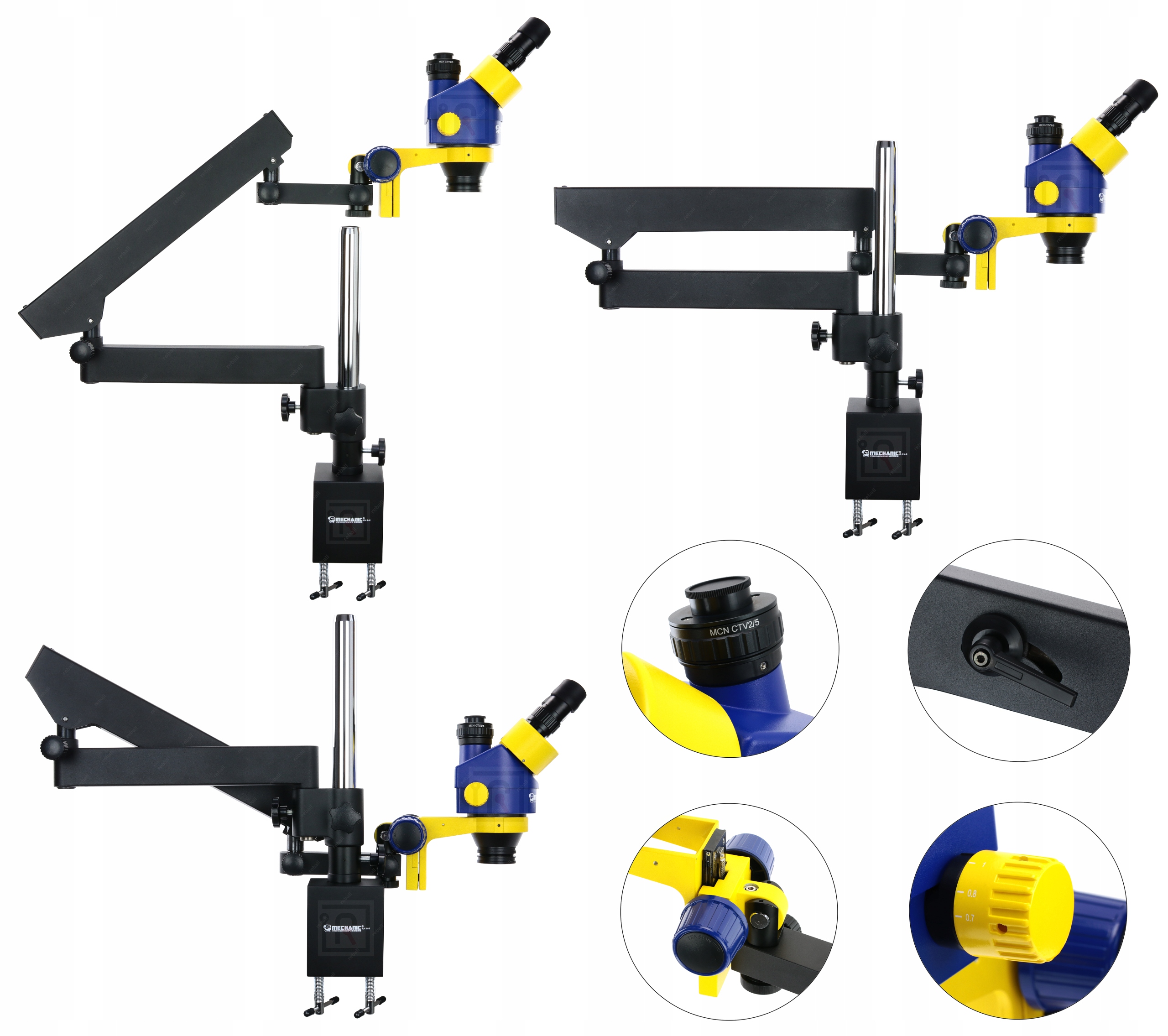 - Голова, нахилена під кутом 45 градусів, що дозволяє проводити довгі спостереження без зайвого затягування м’язів та втоми зору (порівняно з монокулярними мікроскопами),