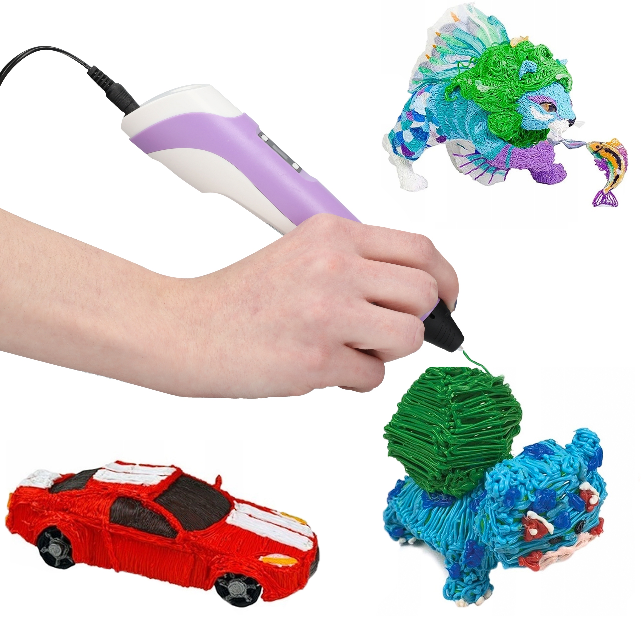 - Пропозиція поширюється на 3D ручку фіолетового кольору + 500 метрів кольорових PLA заправок, яка упакована в міцну фірмову коробку, ідеально підходить для подарунку !