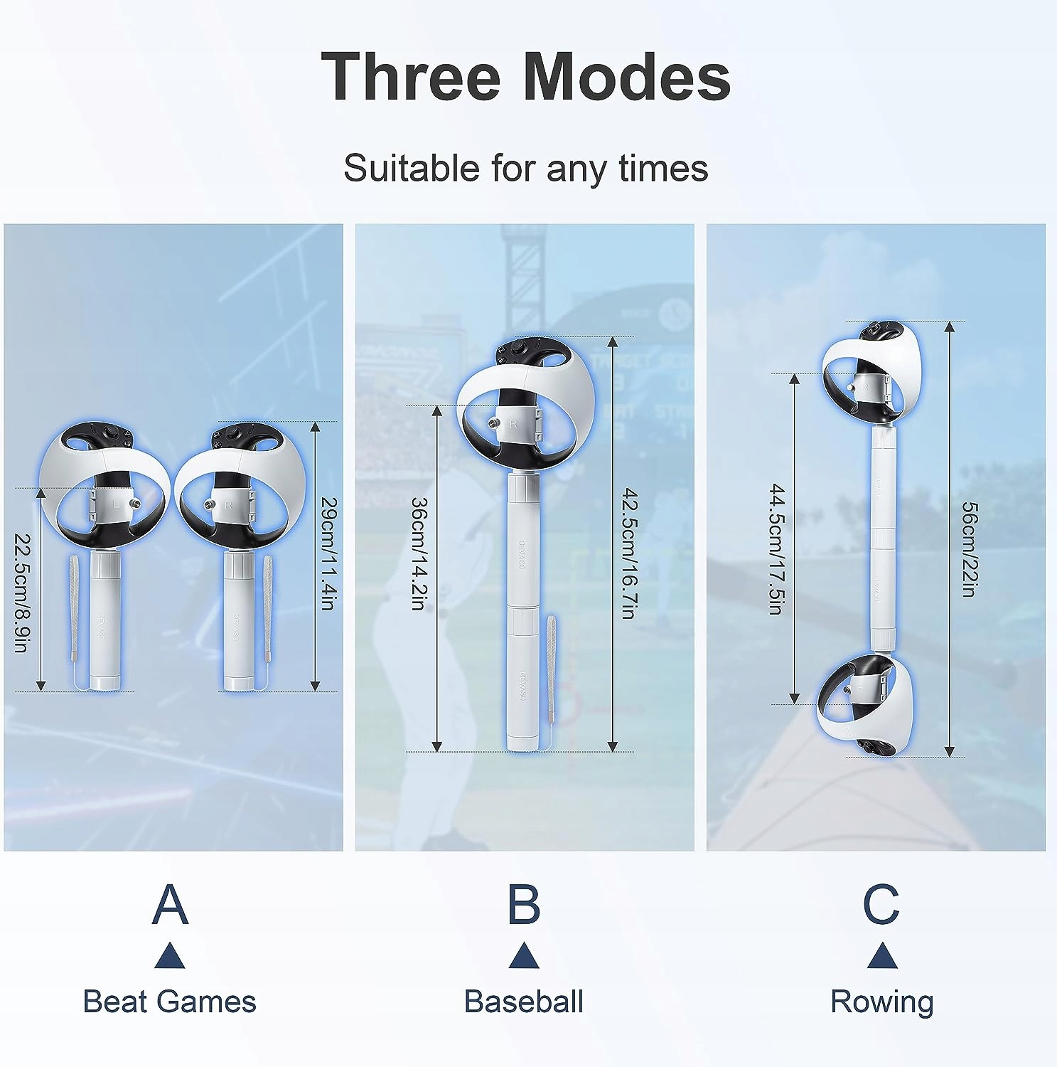 Рукоятка 3-в-1: для контролера PS VR2 є три різні комбінації ручок. Спеціально розроблено для Gorilla Tag, Beat Saber, Supernatural, підходить для ігор у віртуальній реальності з м’ячем, таких як Golf+, Baseball, Tennis, Badminton, Vesling, Fishing тощо.