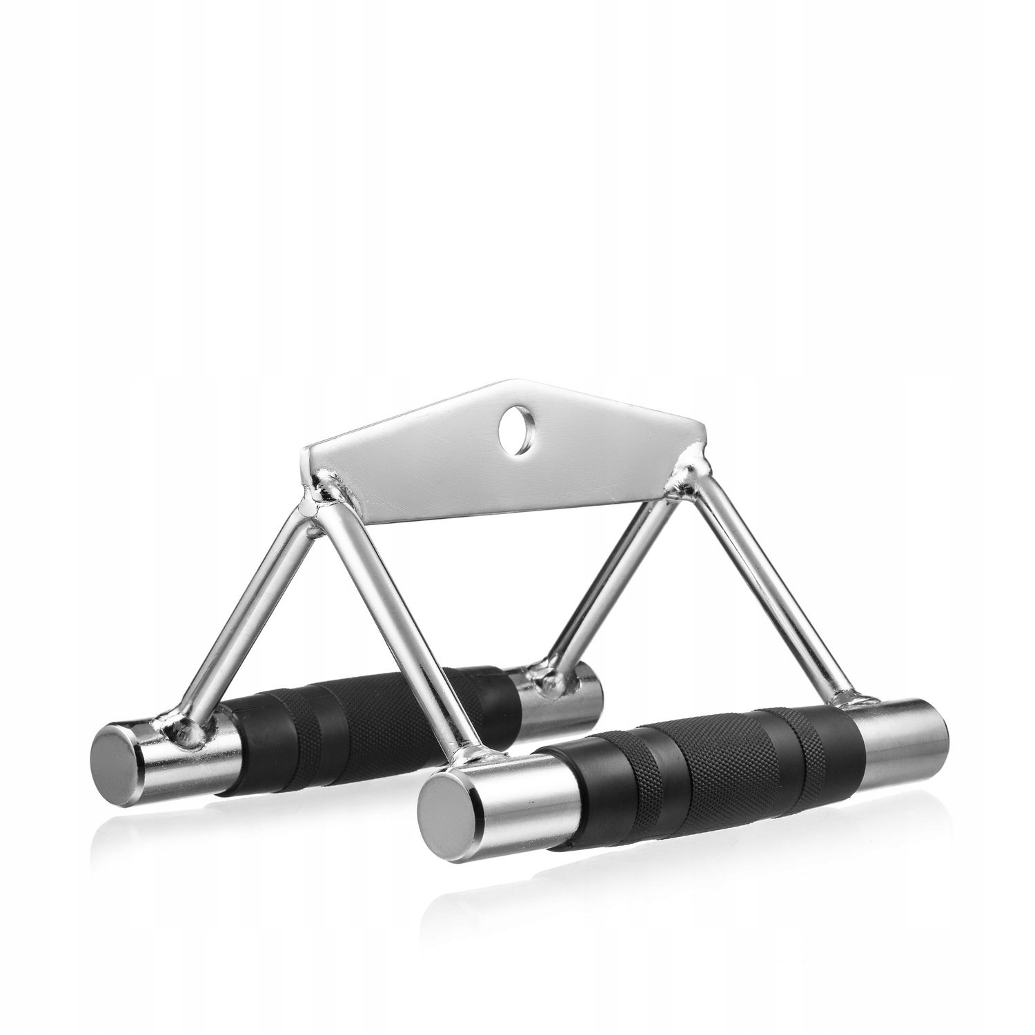 Тримач кабелю — це універсальний аксесуар, який дозволяє ефективно тренуватися як з верхнім, так і з нижнім кабелем і стрічками для опору. Виготовлений з хромованої сталі, він добре працює під час інтенсивних силових занять і залишається міцним протягом тривалого часу. Рифрована поверхня та ергономічний відстань між ручками гарантують надійний і зручний хват, що забезпечує кращий контроль над рухом.