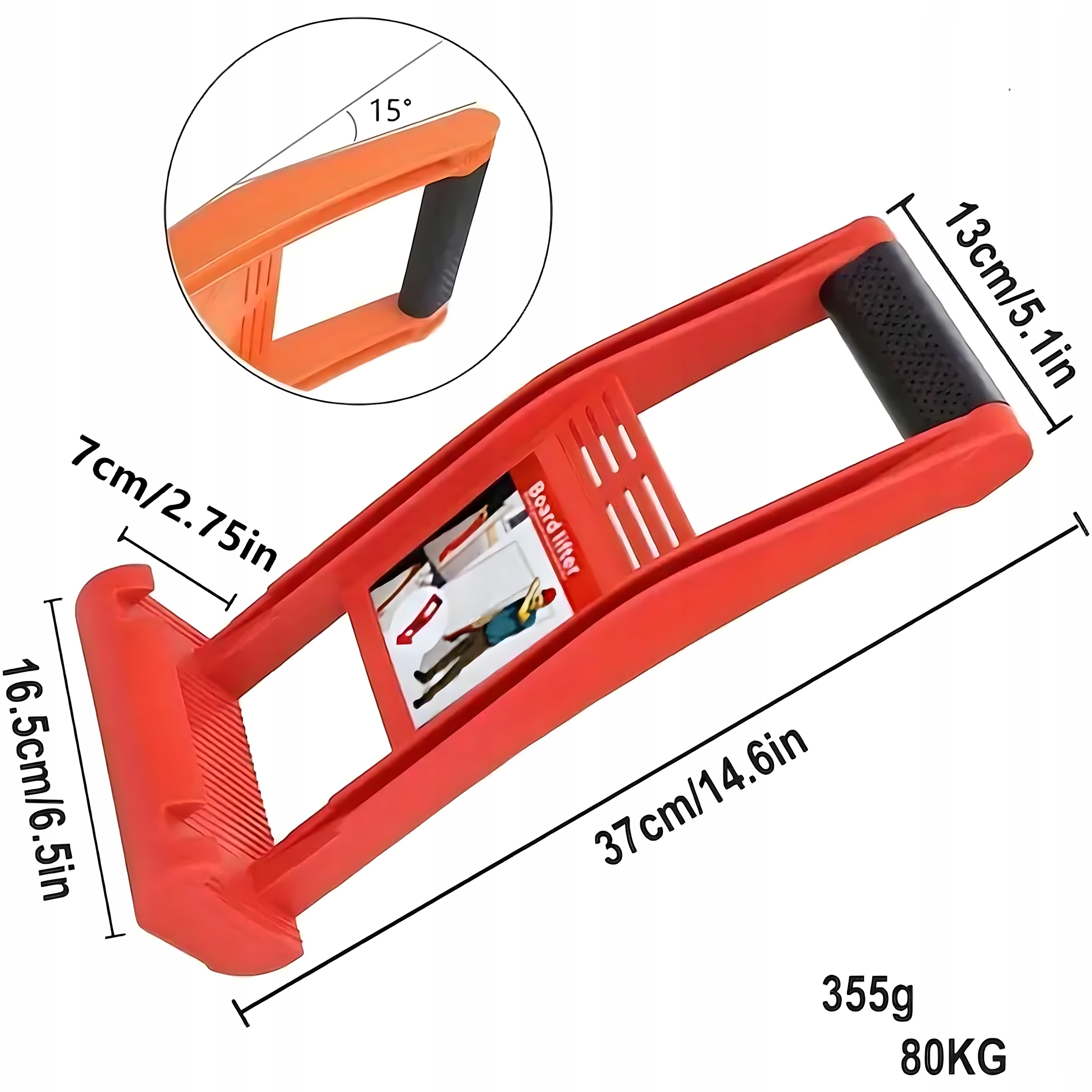 Ручка підходить для транспортування дощок різних розмірів, якщо їх вага не перевищує 80 кг. p>