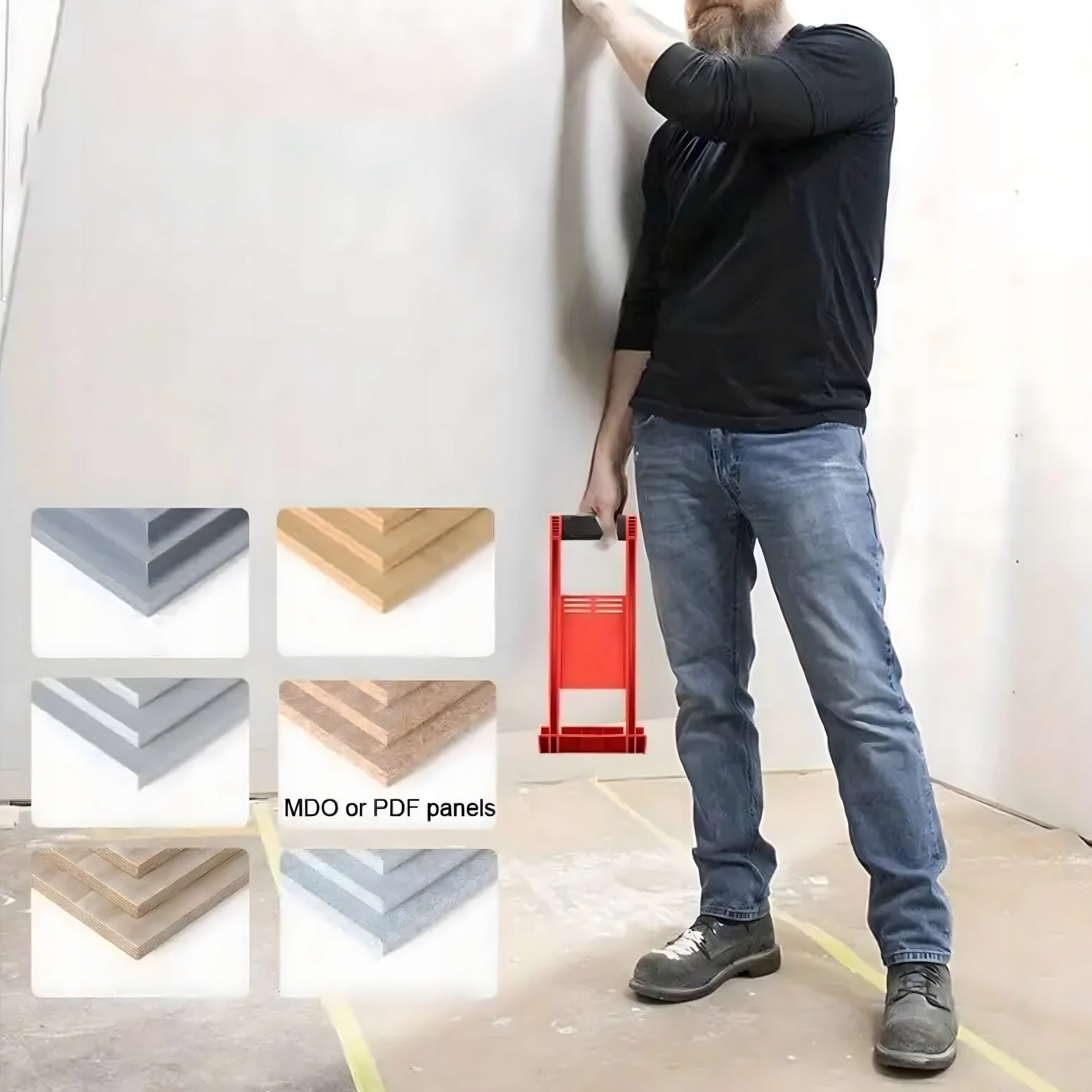 Так, тримач розроблений для універсального використання. Його можна використовувати для транспортування гіпсокартонних, ДСП, МДФ, OSB та інших плит подібної структури.