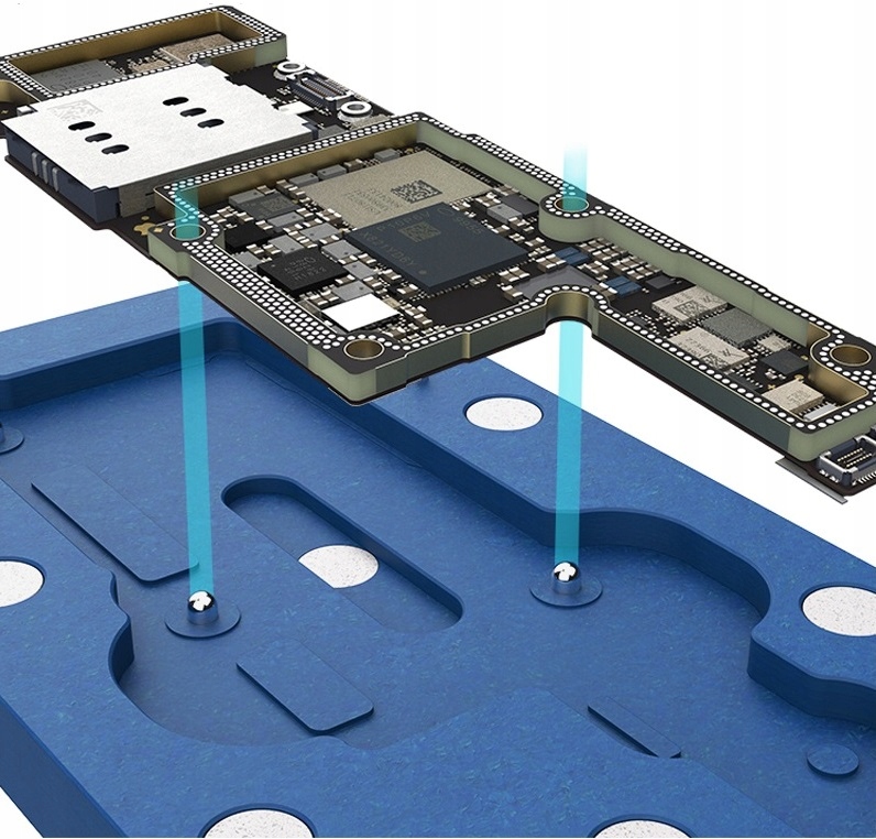 Професійний тримач для ущільнення середнього шару материнської плати iPhone. Щоб з’єднати обидві частини материнських плат разом (так званий сендвіч), необхідно виконати процес реболлінгу.