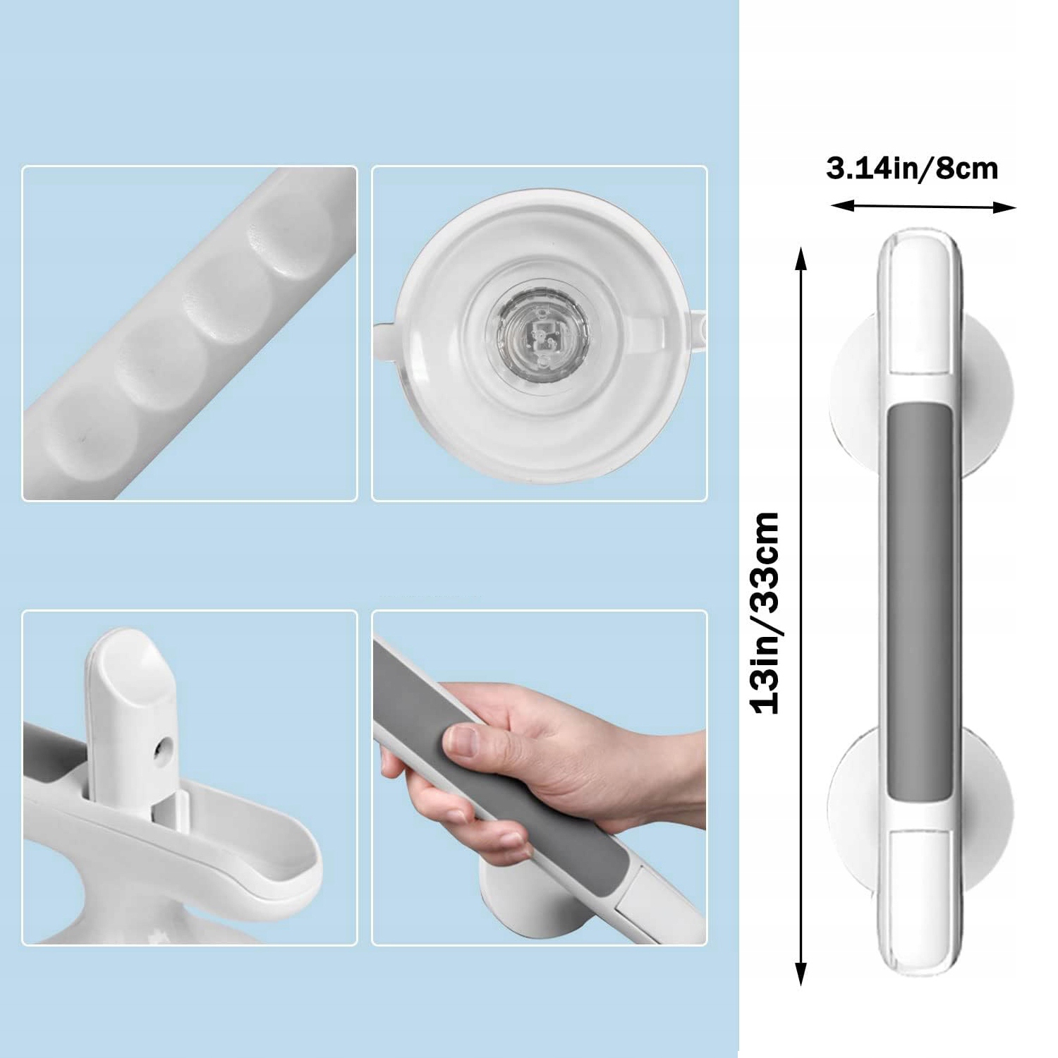 - Поручні придатні для використання на будь-якому непориста, плоска поверхня, включаючи гладку плитку, скло, порцеляну та інші. Ідеально підходить для ванни, душу, туалету, сходів або крісла.
