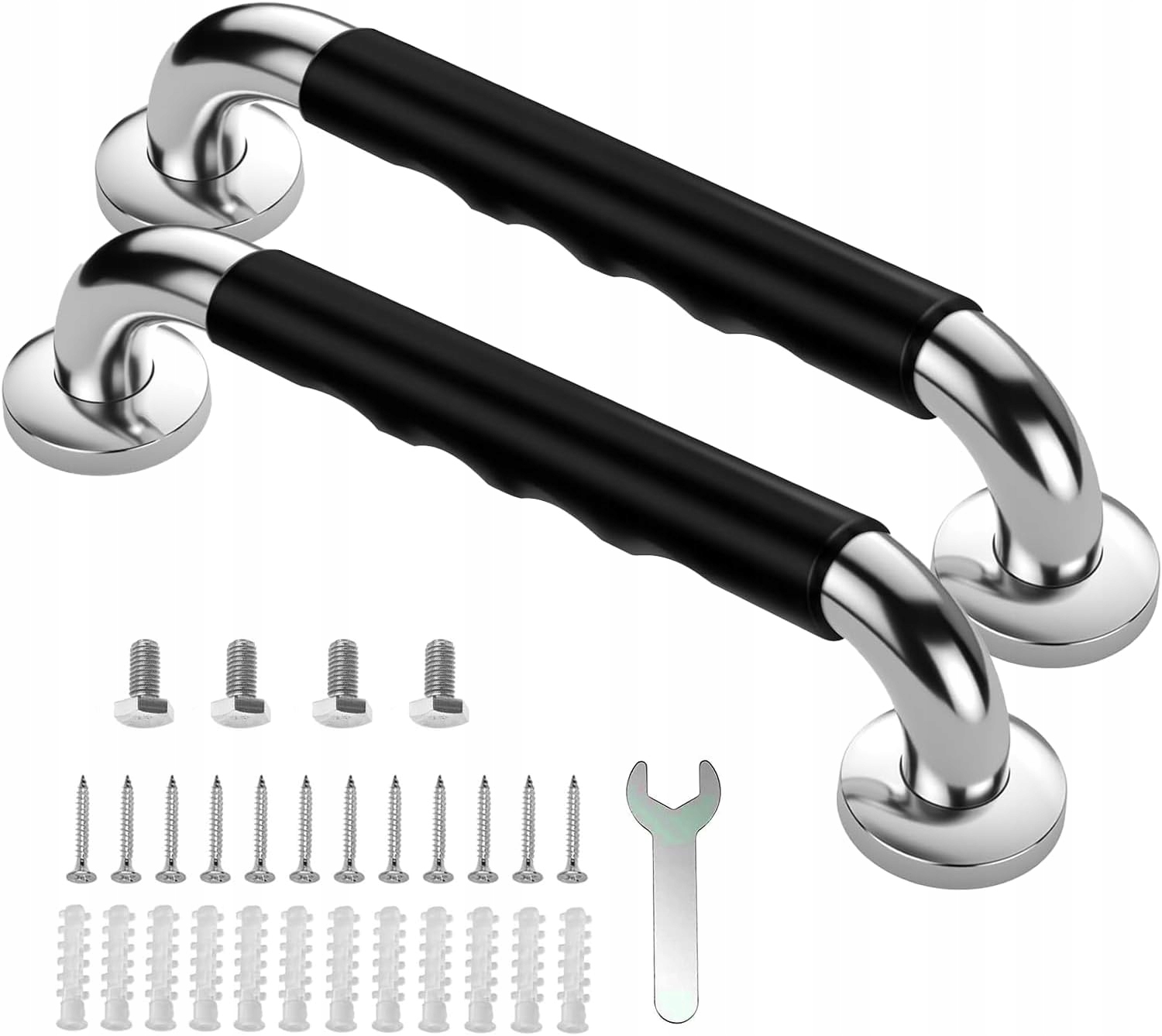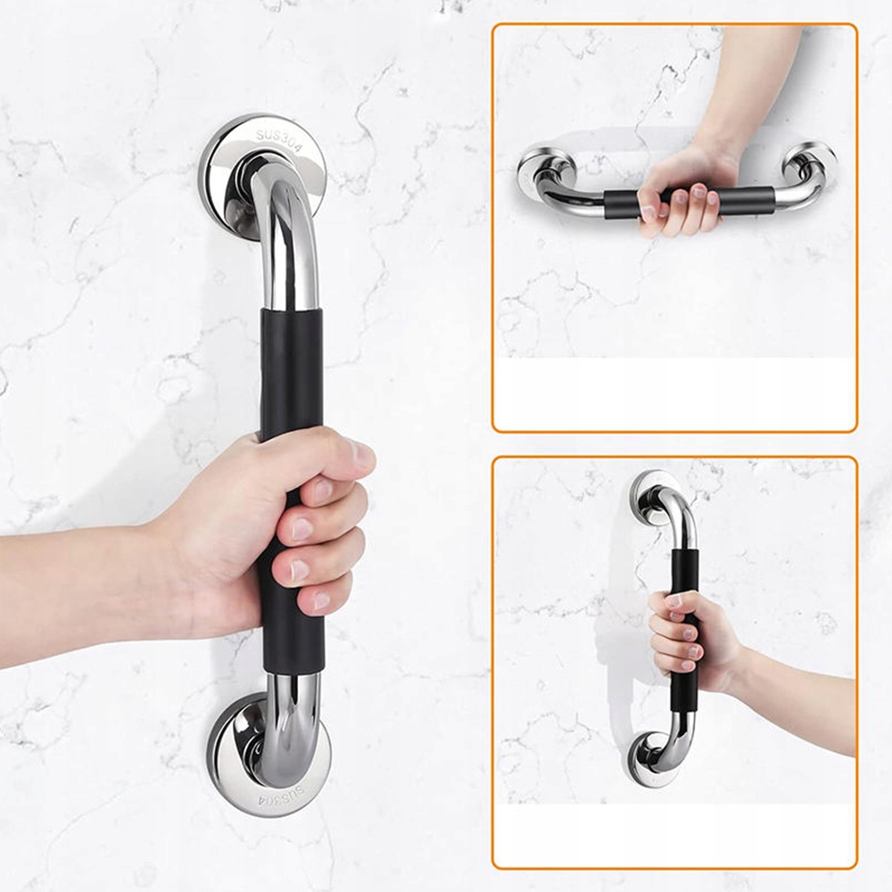 - Цей поручень для ванної кімнати має чорну гумову нековзну ручку яка ідеально підходить для п’яти пальців, забезпечуючи зручне захоплення.