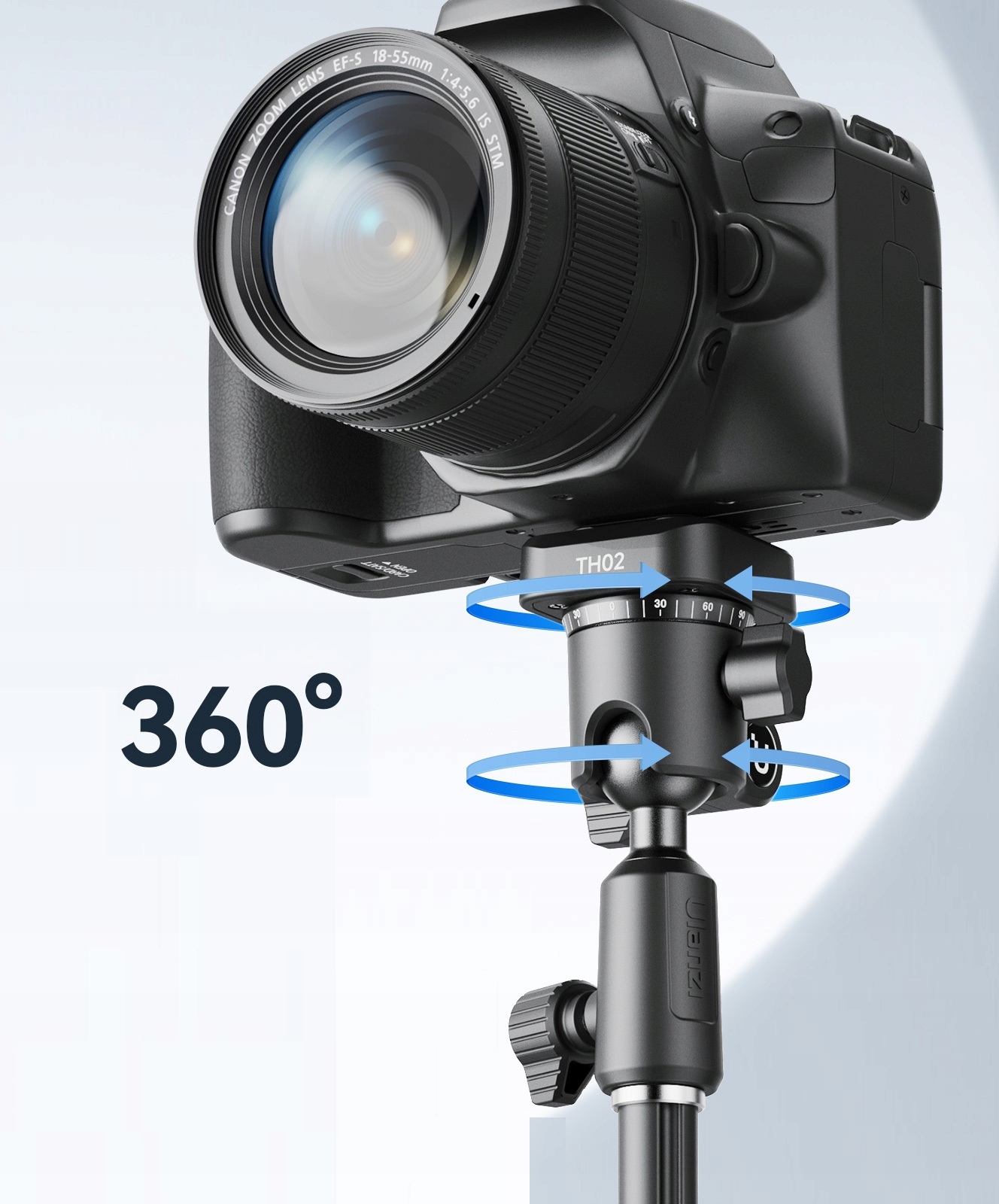 ✳ głowiec ulanzi th02 забезпечує плавне горизонтальне обертання в повному діапазоні 360 °. Завдяки цьому, користувач може зробити плавний рівень камери горизонтально, що особливо корисно при створенні фотографій Panoramas, зйомки динамічних кадрів, фотографії продукту та студії.