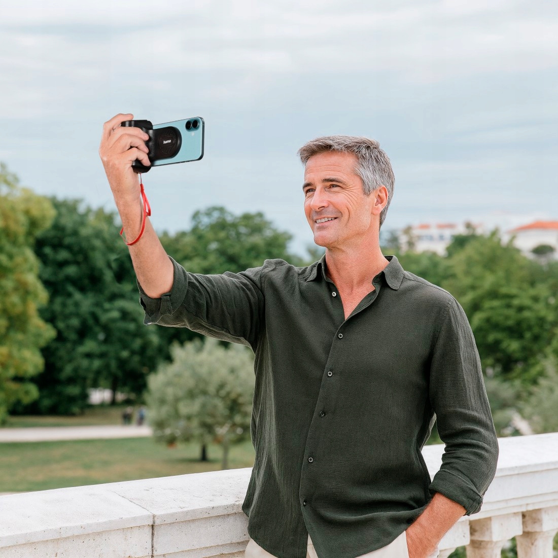 - для селфі з тримачем телефону: кнопка затвора безпосередньо над рукояткою біля великого пальця