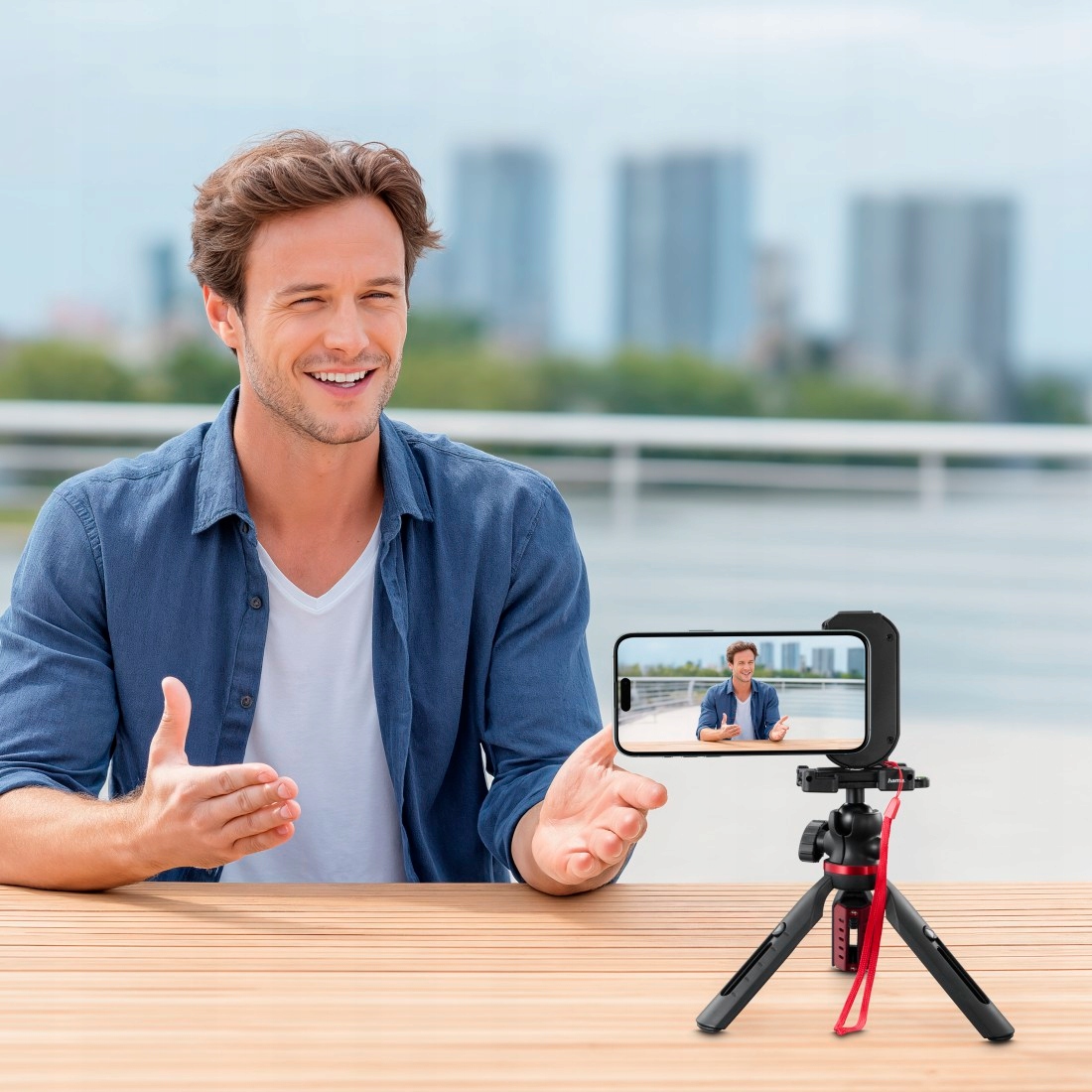 - Незалежно від того, чи використовуєте ви його як тримач для камери чи настільний штатив, у альбомному чи портретному форматі: сильний магніт надійно тримає телефон на місці, а тримач дозволяє вільно фотографувати, знімати фільми та навіть дивитися фільми – ідеально підходить для блогів, відеоблогів, соціальних медіа та для всіх, хто цінує гнучкість і практичність.