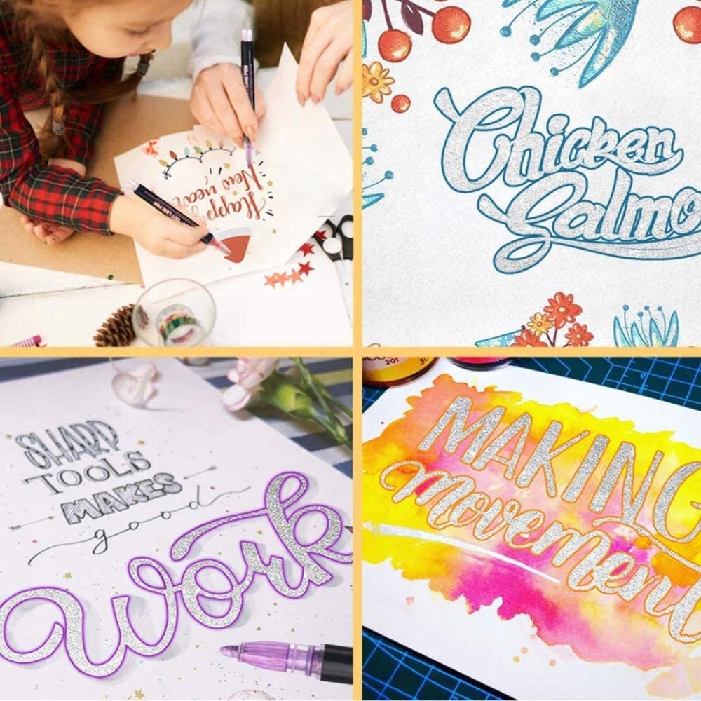 Сьогодні ви можете самі створювати незвичайні візерунки та написи! Наші фломастери, завдяки сучасній формулі, дозволяють робити срібні лінії з барвистими контурами!
