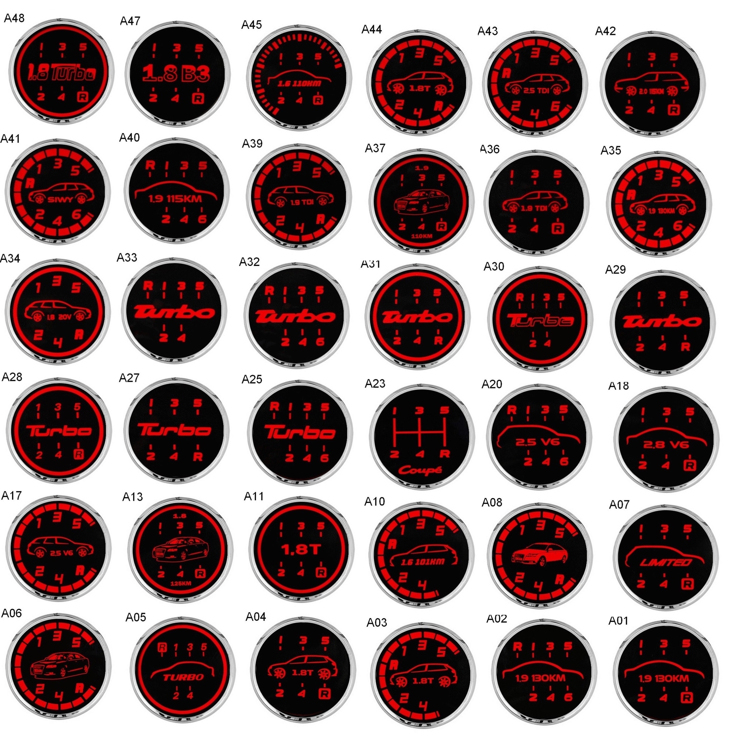 Після покупки вкажіть рік випуску автомобіля, підберемо кріплення для даного автомобіля, установка без доробок, вдень написи, візерунки білі та читабельні, вночі м'яко світяться обраним світлодіодним кольором після підключення до 12v автомобіля, найпростіше підключити до підсвічування, напр. попільнички чи запальнички