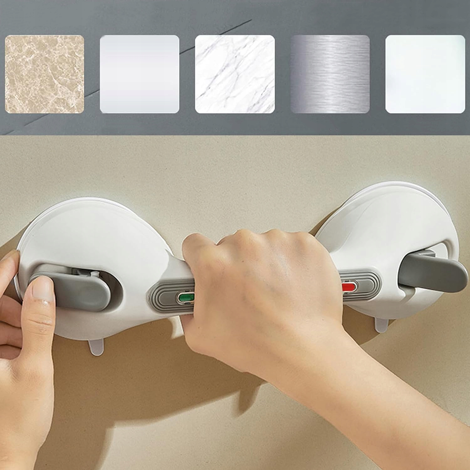 💗💗💗【 Унікальна конструкція】: Жоден тримач для буріння не може бути встановлений за 10 секунд; Присоски надійно тримають тримач для ванної кімнати на гладких поверхнях. Забезпечує стабільність у слизьких місцях і допомагає підтримувати рівновагу для людей похилого віку, травмованих або будь -кому, хто потребує додаткової підтримки у ванній кімнаті. На обох кінцях ручки є два кольорові індикатори безпеки, які дозволяють перевірити, чи є присосна чашка вакуум. Початковий індикатор стану освітлюється червоним кольором, а індикатор статусу вакууму загоряється зеленим. Якщо після встановлення індикатор почервоніє, перевстановлюйте тримач. Коли індикатор зелений, будь ласка, уважно перевірте, чи добре прикріплений власник, щоб забезпечити безпечне використання.