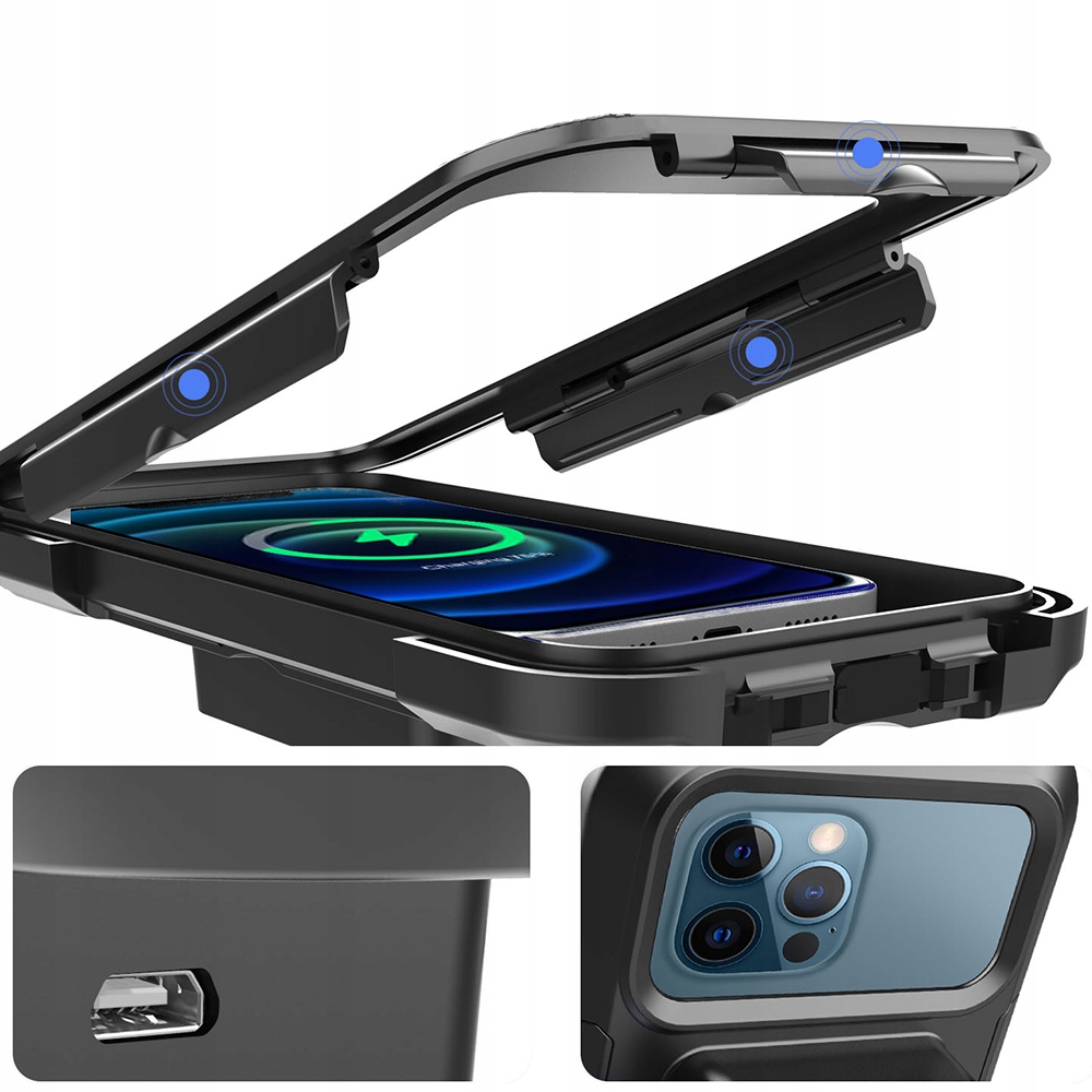 - Вбудований індуктивний зарядний пристрій потужністю 15 Вт. У комплекті два кабелі один, за допомогою якого ми можемо підключити футляр безпосередньо до електроустановки мотоцикла чи скутера, а інший має USB-вихід, придатний, наприклад, для банку живлення < /ul>