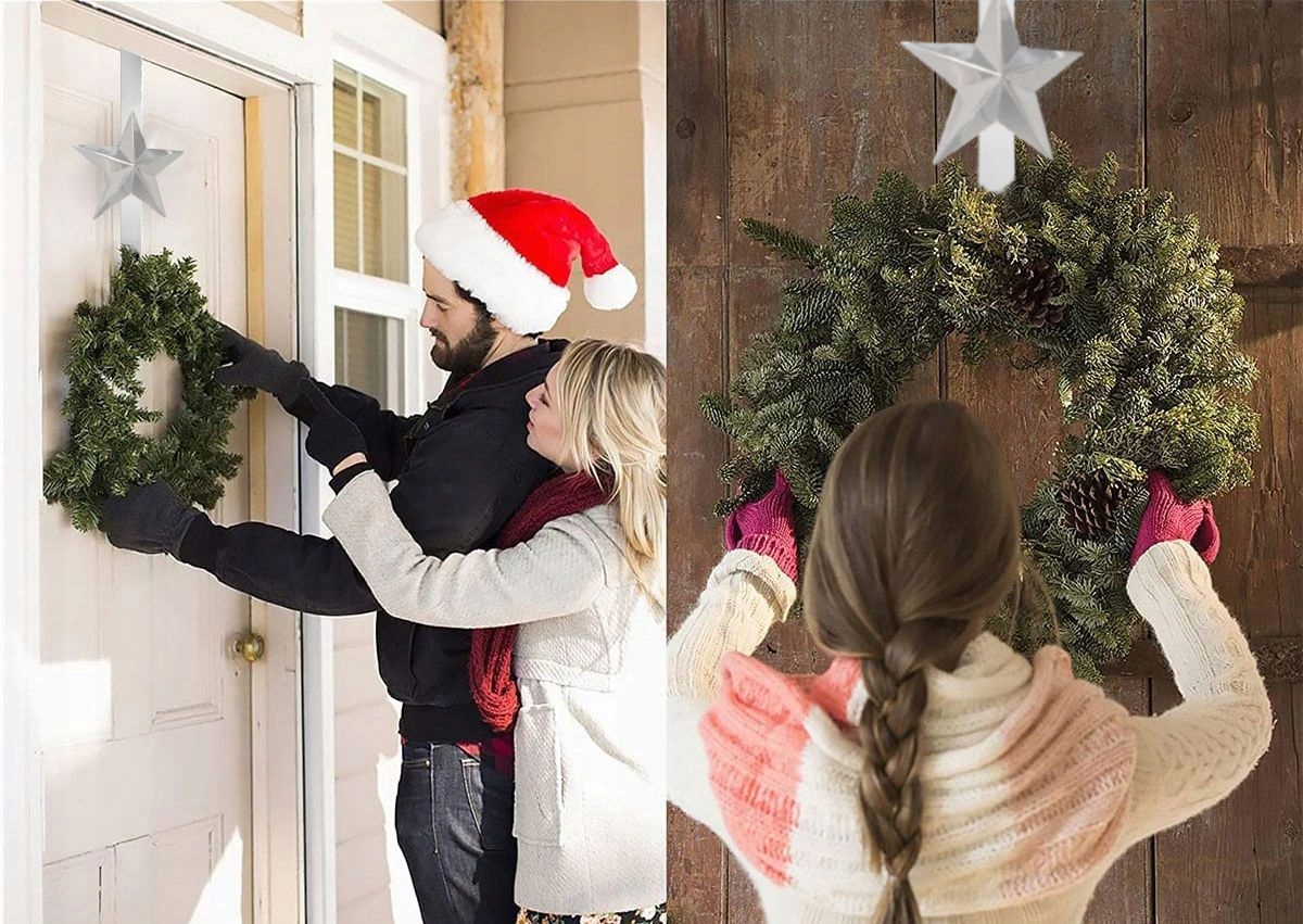 Практична вішалка для різдвяної прикраси дверей. Виготовлений з міцного матеріалу з декоративною зіркою. На нього можна повісити будь-які прикраси до будь-якого свята.