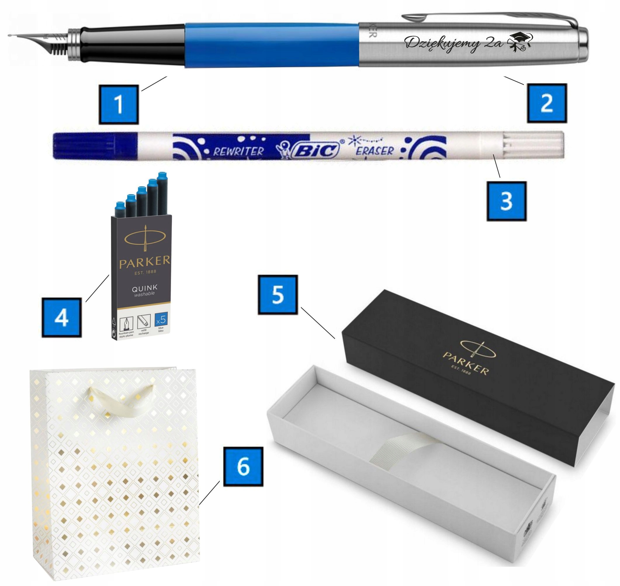 РУЧКА PARKER JOTTER СИНЯ З ГРАВІЮВАННЯМ BIC КАРТРИДЖІ ДЛЯ ГУМКИ ТА СУМКА