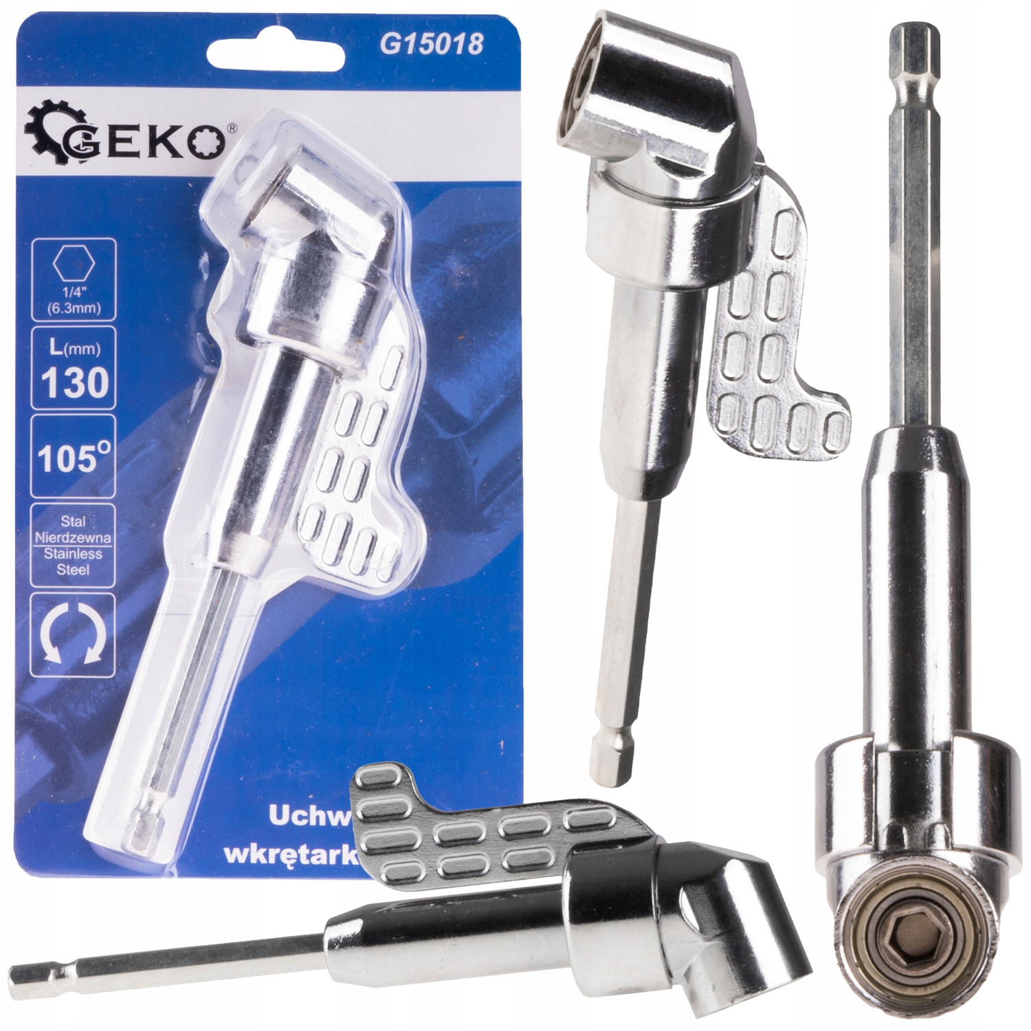 Представляємо вашій увазі практичний і надійний кутовий адаптер для викрутки довжиною 130 мм, який дозволяє працювати в важких умовах. -доступні місця. Завдяки куту нахилу 105° ви легко дістанетеся до кожного гвинта.