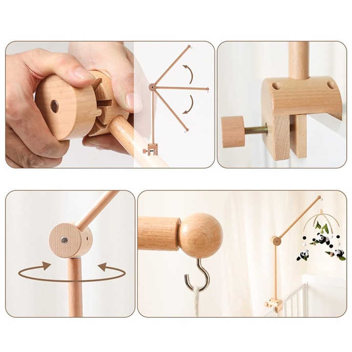 . Портативний дитячий тримач можна використовувати для підвішування музичної скриньки, обертання прикрас та іграшок. Розвішування дитячих іграшок або прикрас приносить багато радості вашій дитині. Побудуйте власний мобільний будинок для вашої дитини.