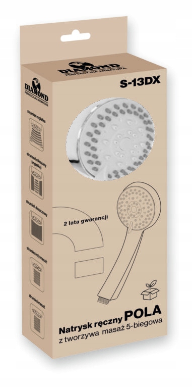 РУЧКА ПЛАСТИКОВА ДУШОВА РУЧКА POLA 5 ФУНКЦІЙ МАСАЖ ХРОМОВИЙ ДІАМАНТ