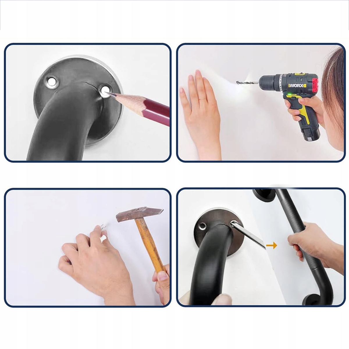 👍Настінний поручень:Поручень для ванної кімнати має прихований монтажний фланець і постачається з монтажними гвинтами для легкого встановлення. Його можна встановити під будь-яким кутом і прикріпити до стіни.