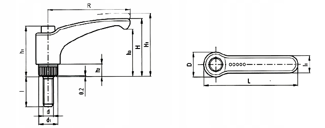 Регульований важіль зі сплаву цинку з різьбовим штифтом