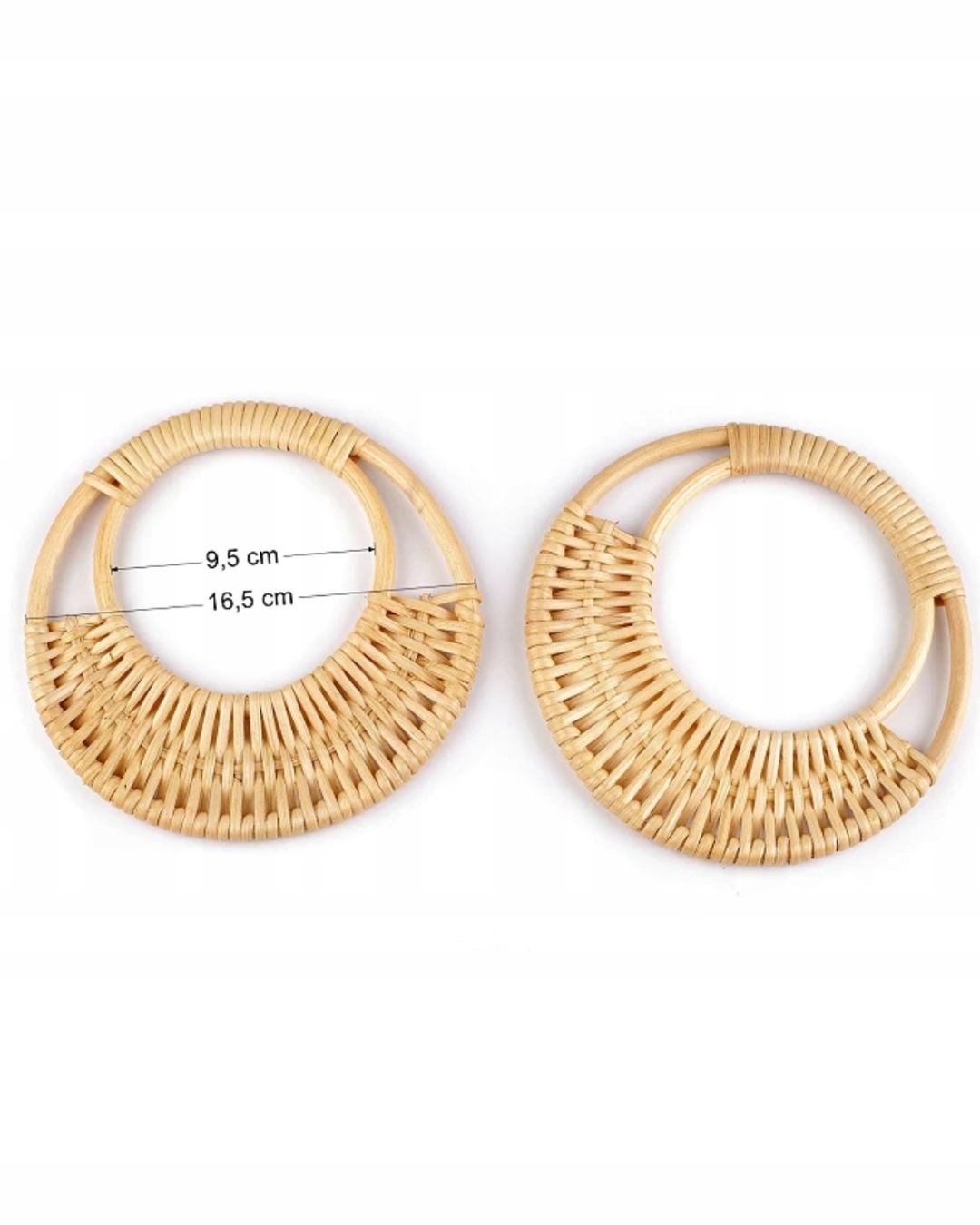 Круглі, ткані ручки з ротанга - це натуральне та стильне доповнення до матеріалу або в'язаних мішків, мішків та кошиків. Їх легкий дизайн не обтяжує готовий продукт, який ви можете оцінити, особливо за допомогою повсякденного зносу. Вуха призначені для пришиті. Матеріал