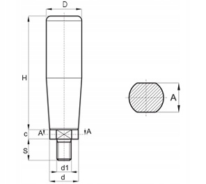 Обертова ручка з різьбовим штифтом D-25 мм H-69 мм M8 x 15 мм